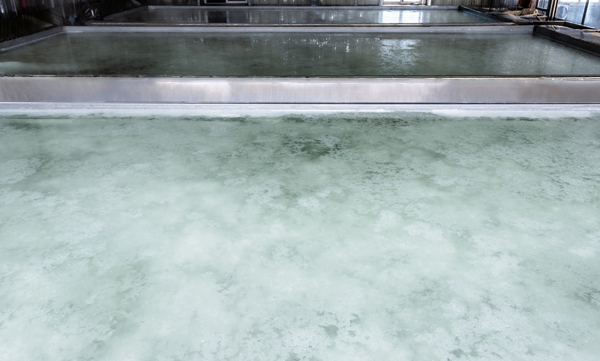 안전하고 깨끗한 꽃소금을 만듭니다. (천일염 용해→여과→재결정→살균·건조)